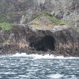 そういうわけではありません。岩についたひび割れなど、小さな傷に波が打ち付けることで徐々に傷が広がっていき、貫通して穴が空いたのです。いくら季節風が吹き付け、波の荒い島の北西岸とはいえ、いったいどれほどの時間がかかったのだろう。